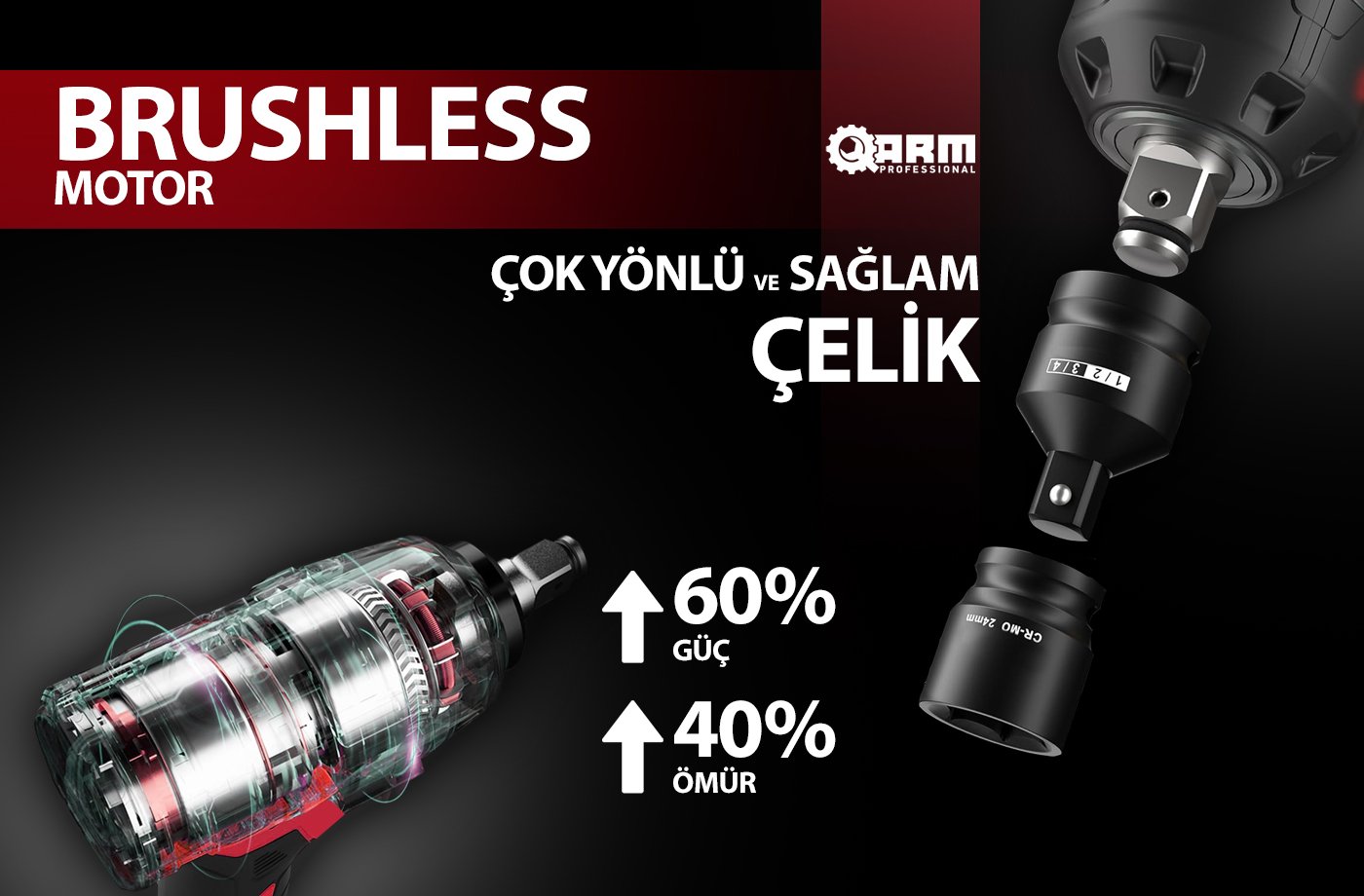 Arm Titan’ın 21V şarjlı el aletlerinde sunduğu kömürsüz motor teknolojisi, kullanıcılara birçok kritik avantaj sağlar:
